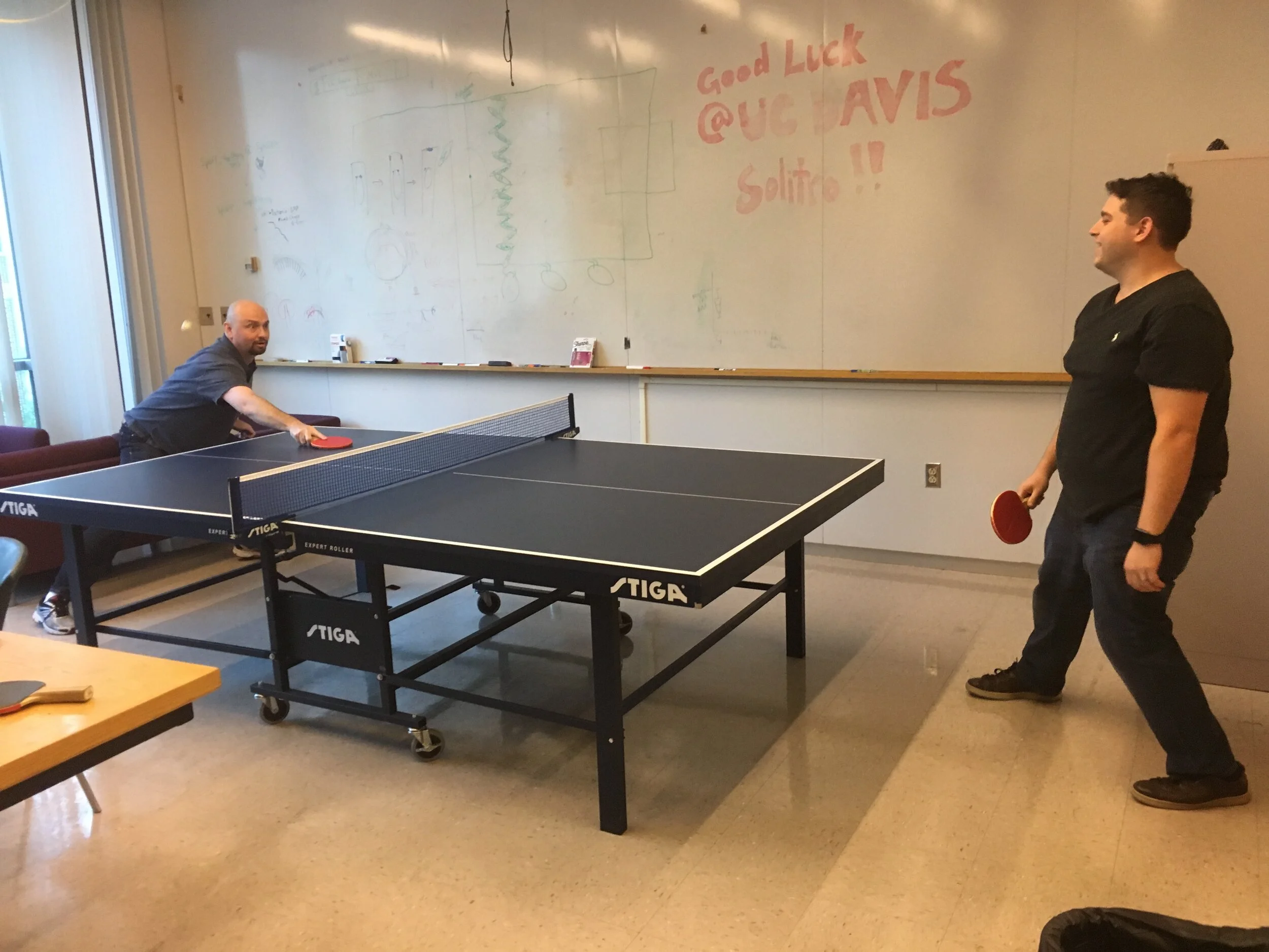 Enjoying an afternoon ping-pong break